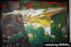 Колуна комузун алып, жашап өткөн өмүрүн күүгө салып, ойлуу отурган токсон жаштагы аксакал тууралуу тартылган “Улуу ата мекендик согуштун катышуучусу” деген чыгарманын автору, сүрөтчү Жусуп Матаев бул көргөзмө мурдагылардан айырмаланып, 7-апрель окуясын камтыган полотнолорго кеңири орун берилгенин белгиледи.