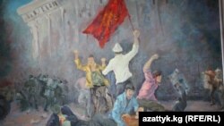 Сүрөтчү Бактыбек уулу Рысбек менен А.Сыдыковдун 7-апрель окуясы тууралуу эмгектеринде Ак үйдүн жанында кымгуут түшкөн калың элдин, окко учкан балдардын канга боелгон элестери камтылган.