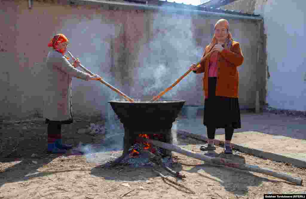 Чүй облусунун Жаңы-Жер айылынын тургундары Нооруз майрамын тосууга камынып жатат. Жыл сайын 10 кошуна биригип кезек-кезеги менен сүмөлөк кайнатышат.